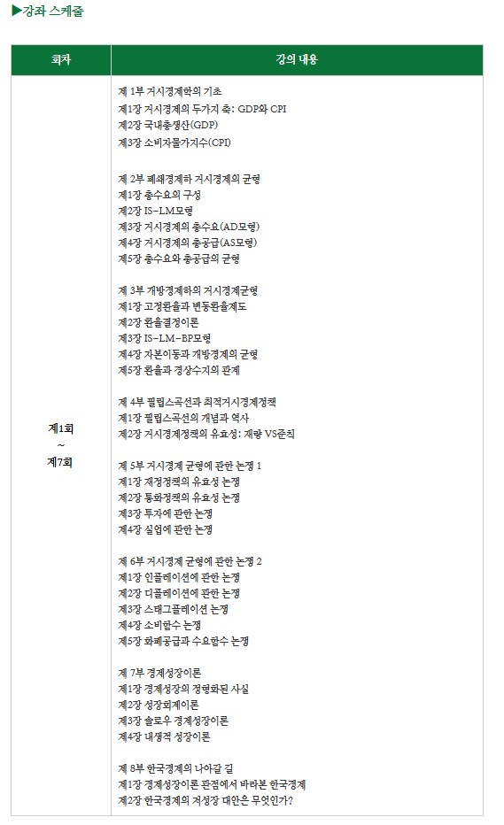 * 거시경제+경제논술 강좌는 7번의 수업( 토요일 5회, 수요일2회)으로, 5주 완성예정, 필요시 보강1회 가능